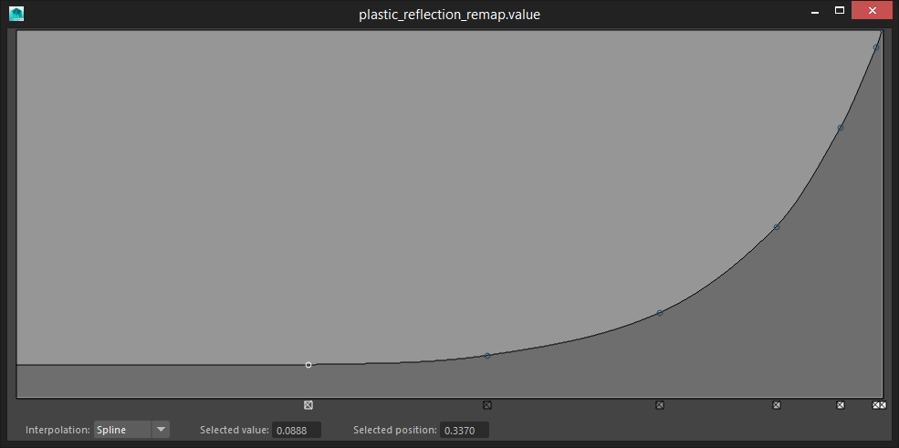 Here you can see an example of how the remapValue curve looks for the plastic reflection: