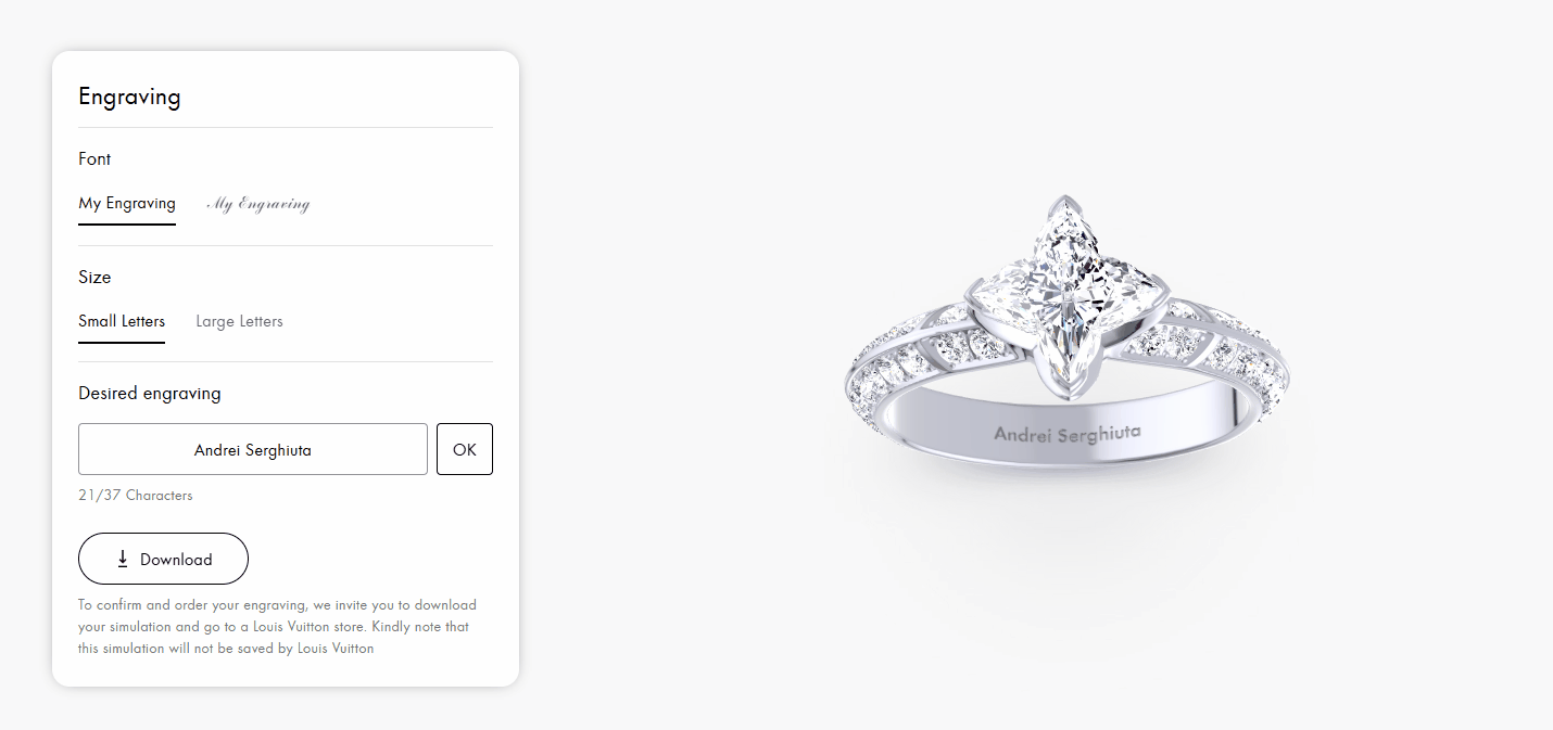 For Louis Vuitton, I helped develop interactive WebGL experiences that allowed customers to personalize pieces through custom engravings, while preserving convincing material response for precious metals and gemstones.